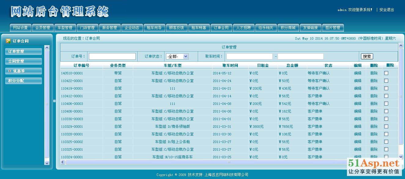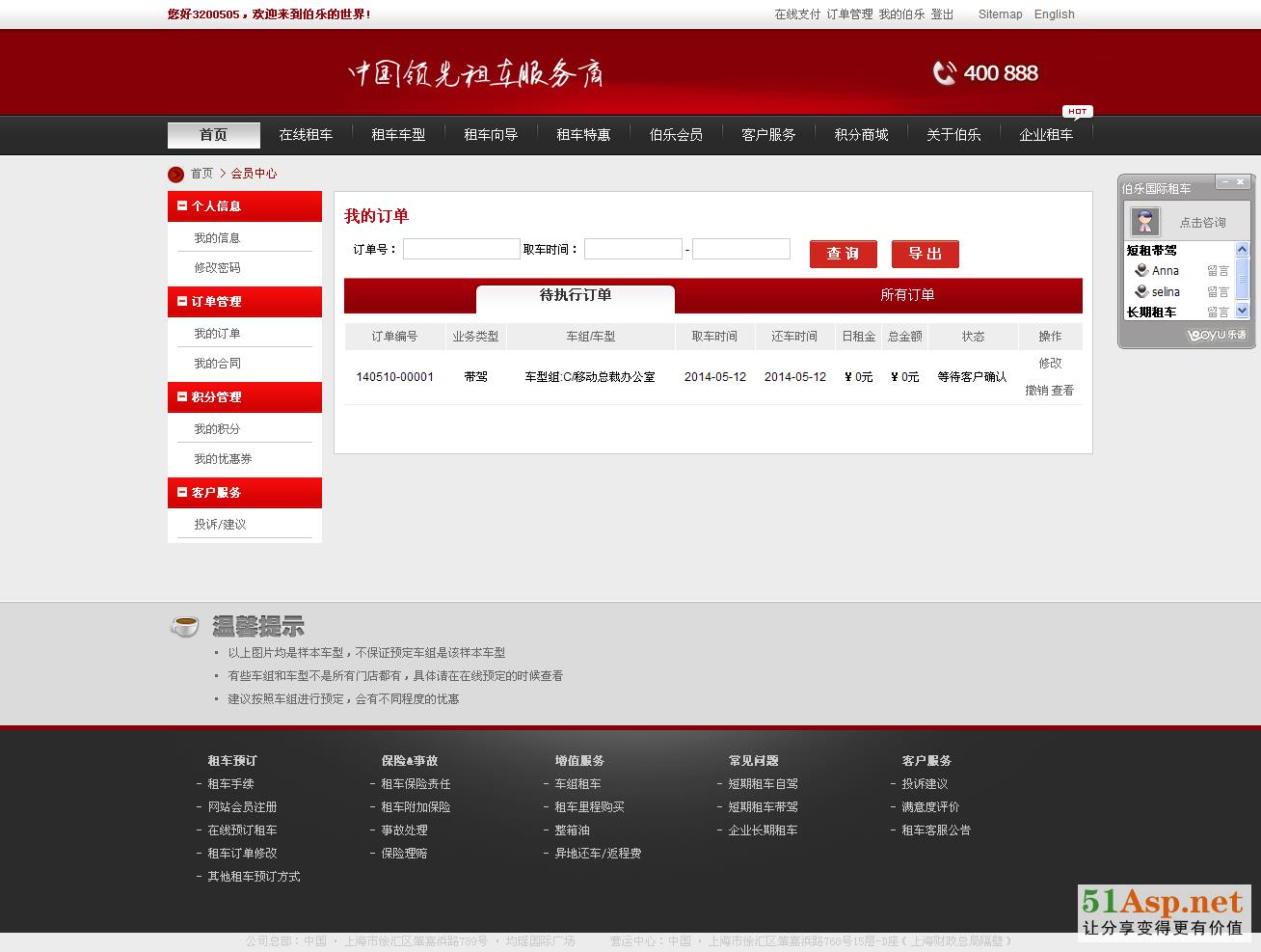 价值5800元的极品汽车租赁门户网站租车网asp.net源码