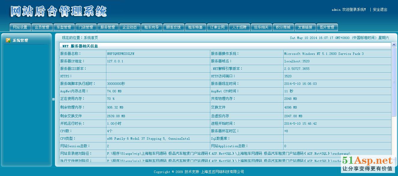 管理员账号:51aspnet.com 密码:51aspnet.com