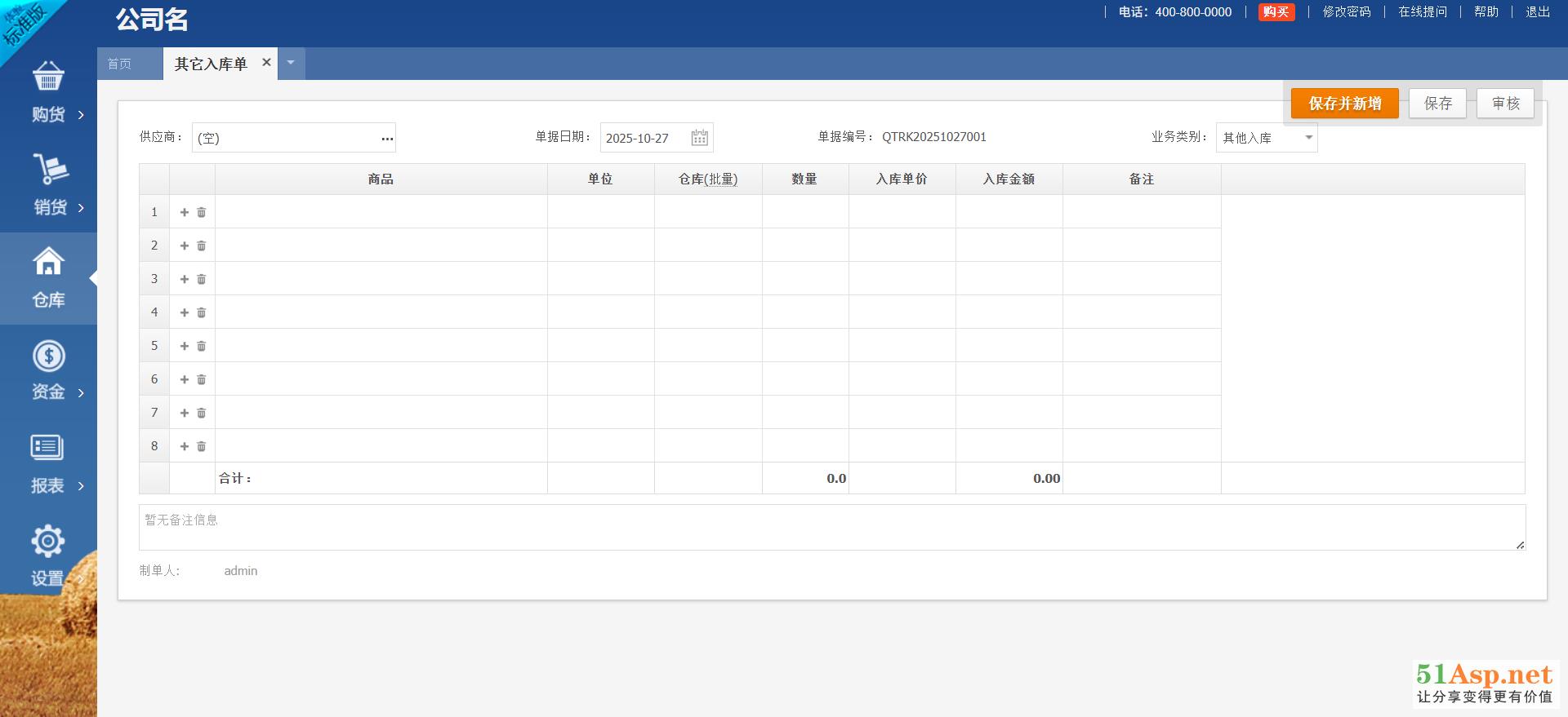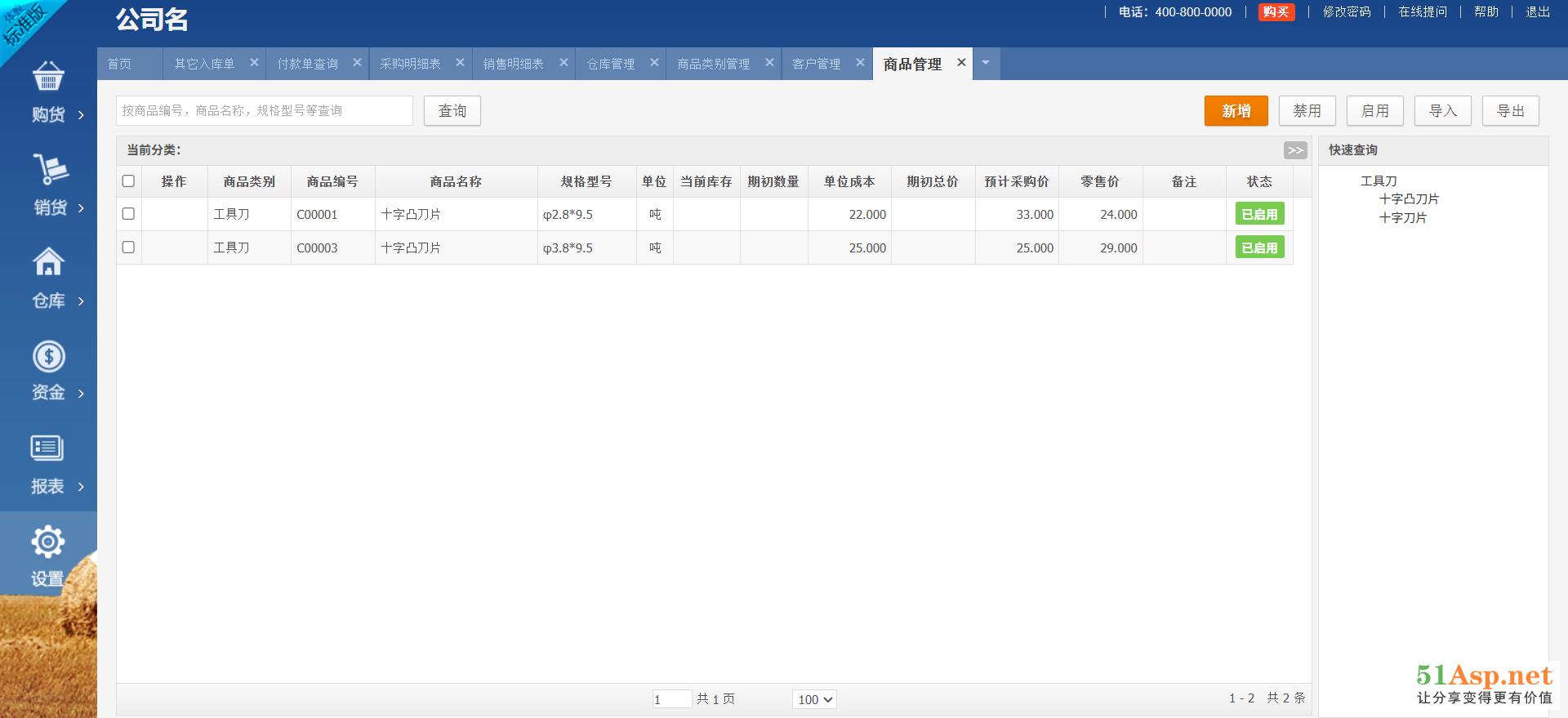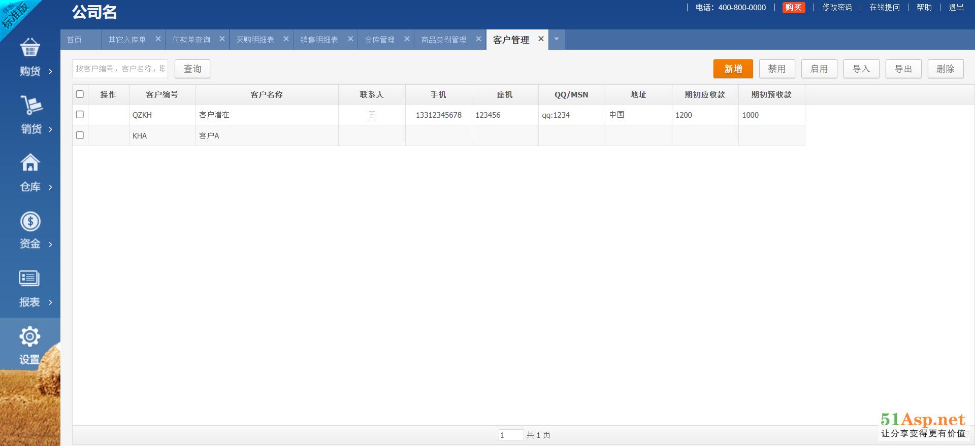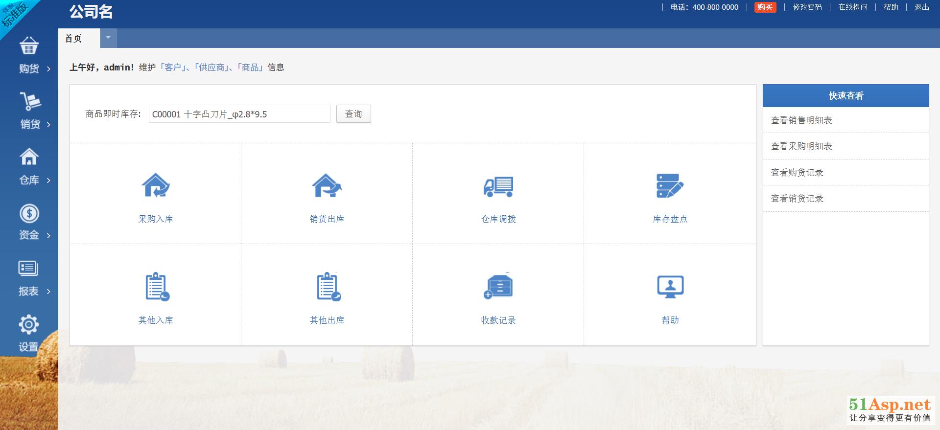 有采购入库、销售出库、调库调拨、库存盘点、收款记录、客户管理等功能。
